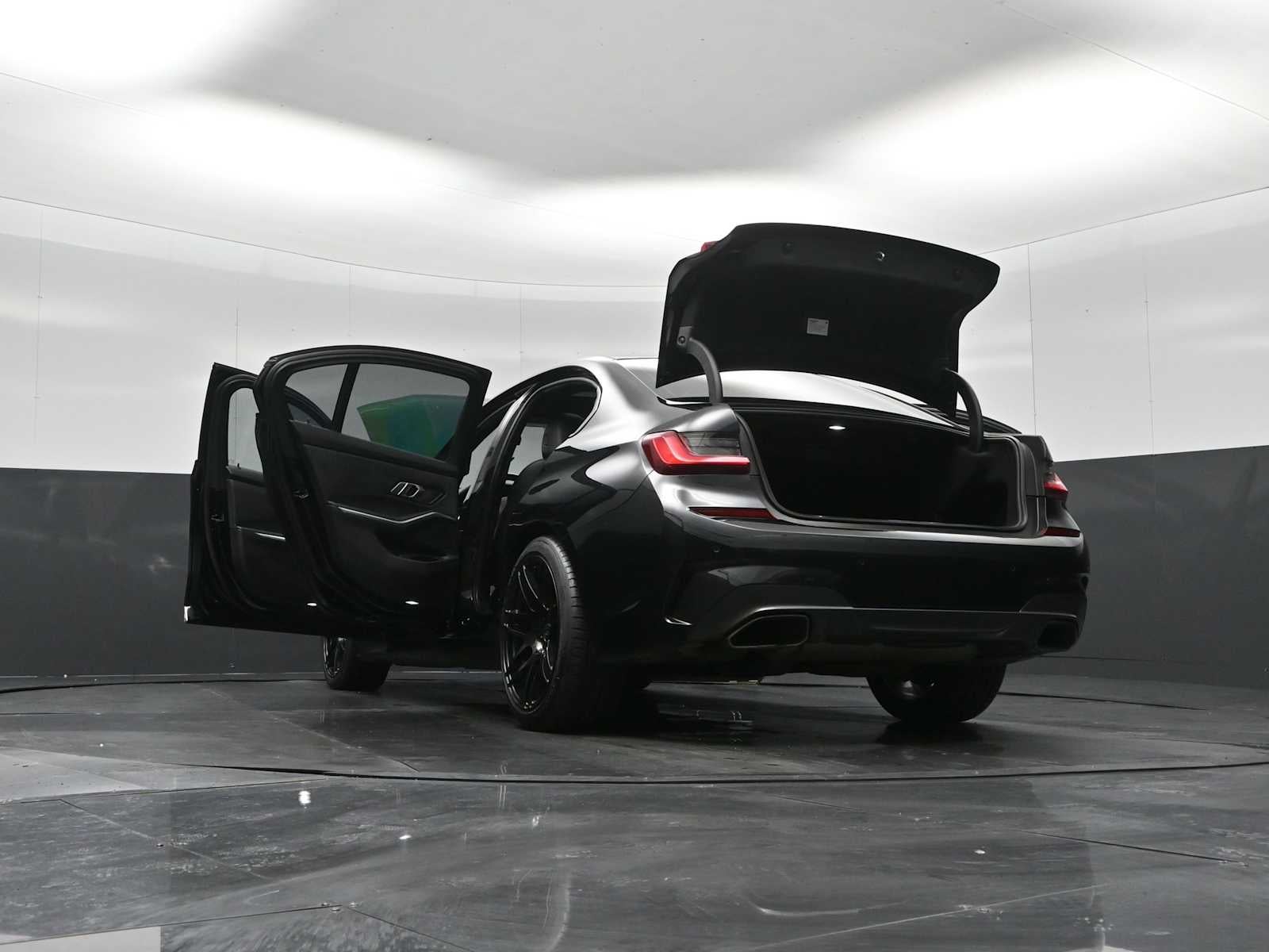 Navigation, Sunroof, All Wheel Drive, Rear Air, Back-Up Camera, Turbocharged, Satellite Radio, iPod/MP3 Input, Onboard Communications System, Aluminum Wheels. Rear Spoiler, MP3 Player, Keyless Entry, Steering Wheel Controls. BMW M340i xDrive with Black Sapphire Metallic exterior and Black interior features a Straight 6 Cylinder Engine with 382 HP at 5800 RPM*.